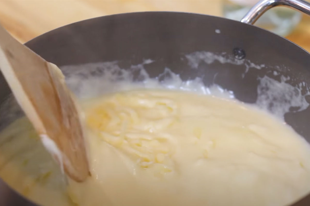 Finish the cheese fondue with a splash of cherry kirschwasser and some freshly grated nutmeg. You can omit the alcohol, but I highly recommend picking up a bottle.